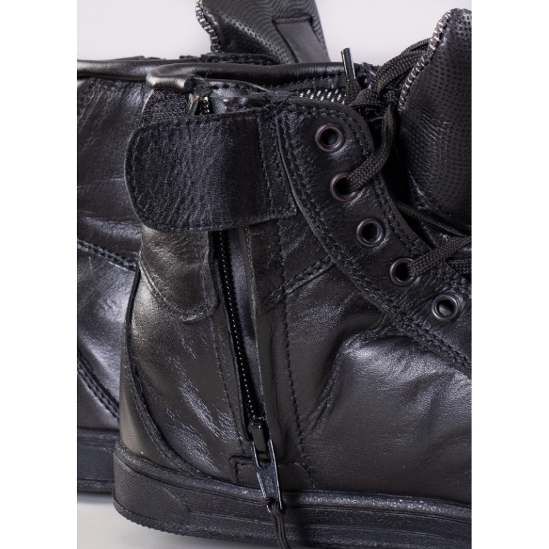 Blacktide Level-2 CE Waterproof Riding Sneakers with premium leather, breathable membrane, reinforced anti-slip sole, adjustable calf strap and zipper closure :